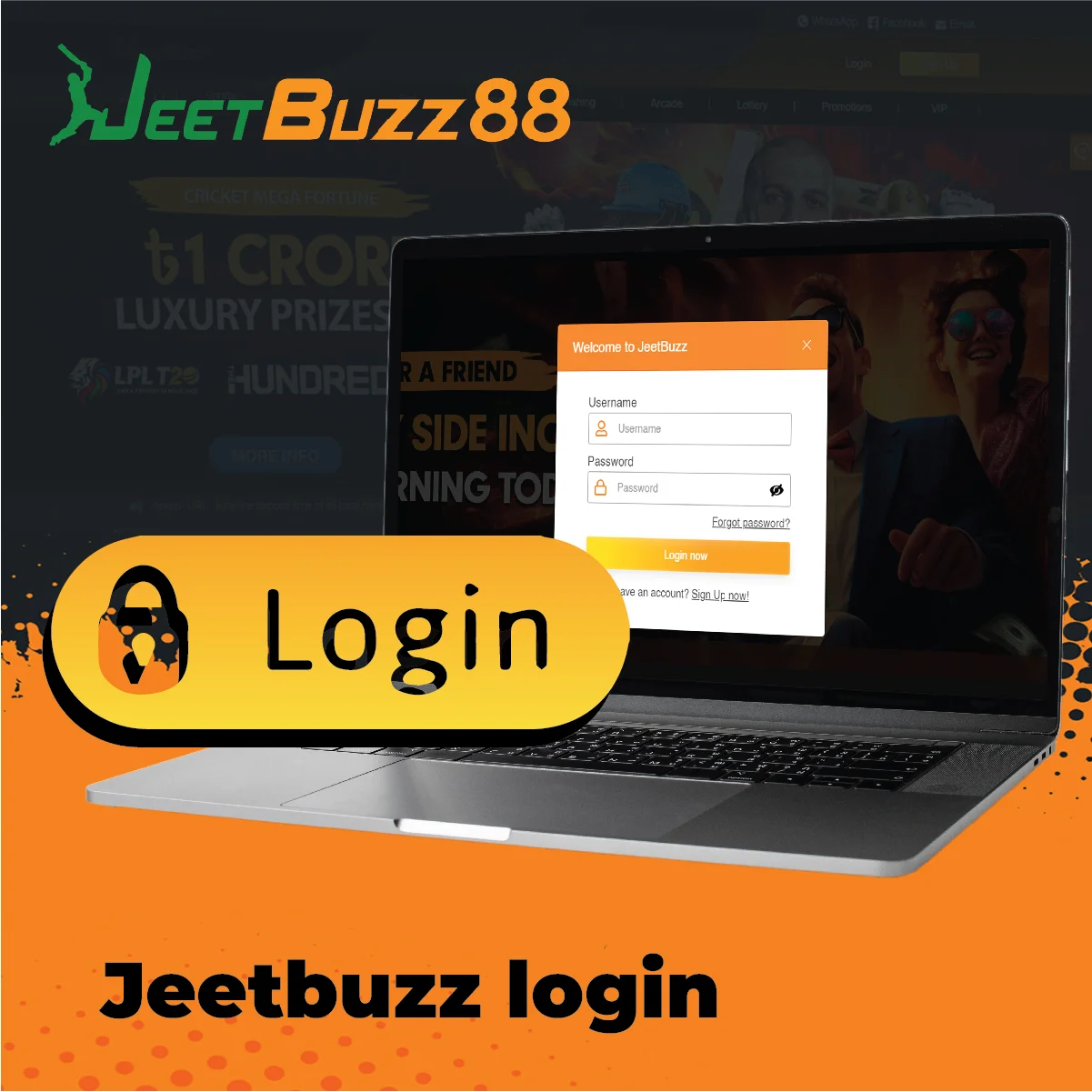 আপনার JeetBuzz অ্যাকাউন্টে সাইন ইন করতে, অফিসিয়াল ওয়েবসাইটে যান এবং লগইন পৃষ্ঠায় আপনার ব্যবহারকারীর নাম ও পাসওয়ার্ড লিখুন।